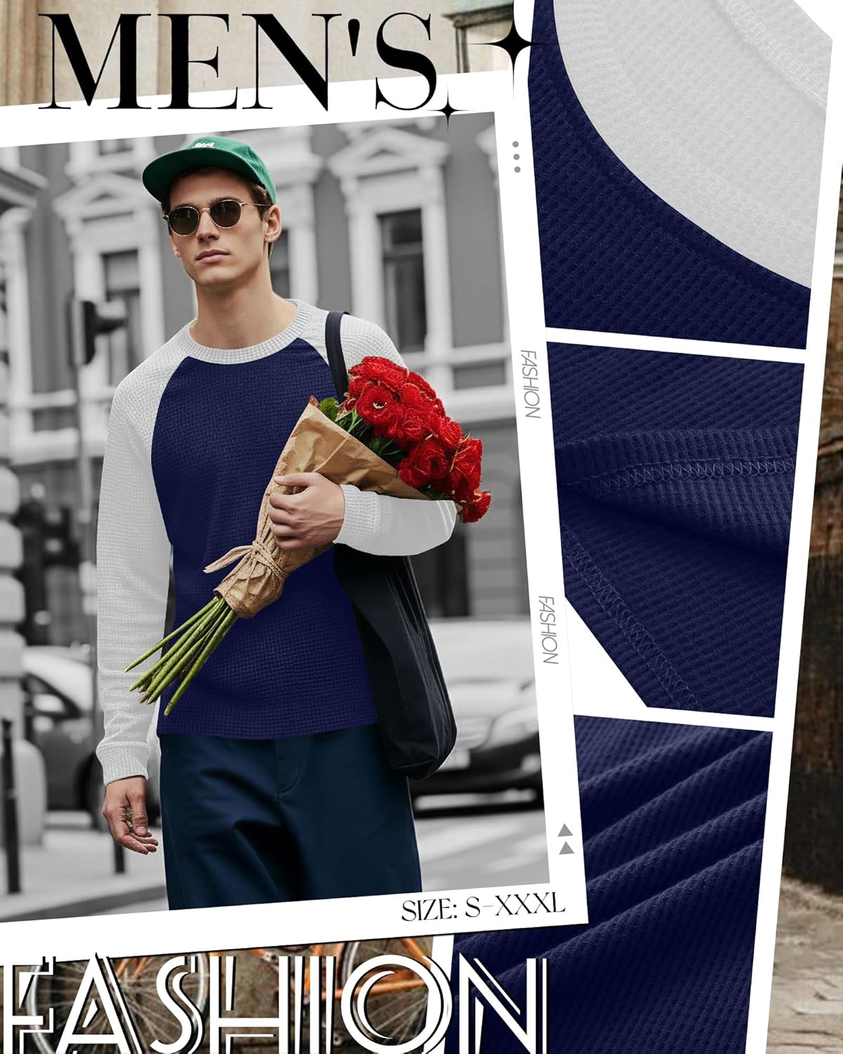 Features: Multiple colors available: Our men's jersey shirts come in a variety of color combinations. You can choose the color that suits you and create comfortable and fashionable casual wear. Practical design: The men's long sleeve top features a trendy waffle knit fabric and color block for a stylish and functional look. Specifications: Material: 65% Polyester, 30% Cotton, 5% Spandex Package includes: 3 x Men's waffle baseball shirts Notes: Manual measurement, please allow slight errors on size. The color may exist a slight difference due to different screen displays