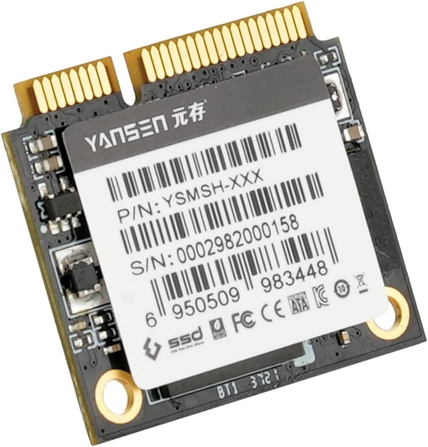 512GB Half Slim mSATA Solid State Disk from Yansen. Reduced size mSATA for embedded applications, ultrabooks and other devices with mSATA interface. Dimensions 29.9mm x 26.8mm and read speed up to 550MB/sec. Built using high-quality 3D TLC NAND Flash chips.