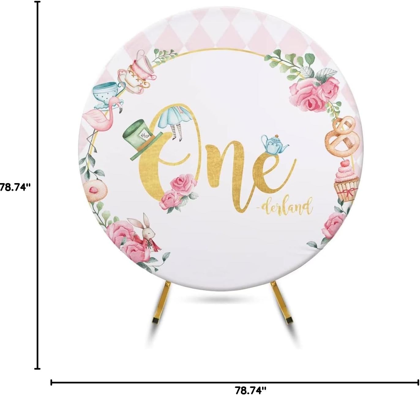 FiVan 6.5x6.5ft Baby Winter Birthday One Backdrop Onederland Flower Round Background Elastic Cotton Polyester No Crease Washable Thickened Fabric Party Photo Booth Props W-8212