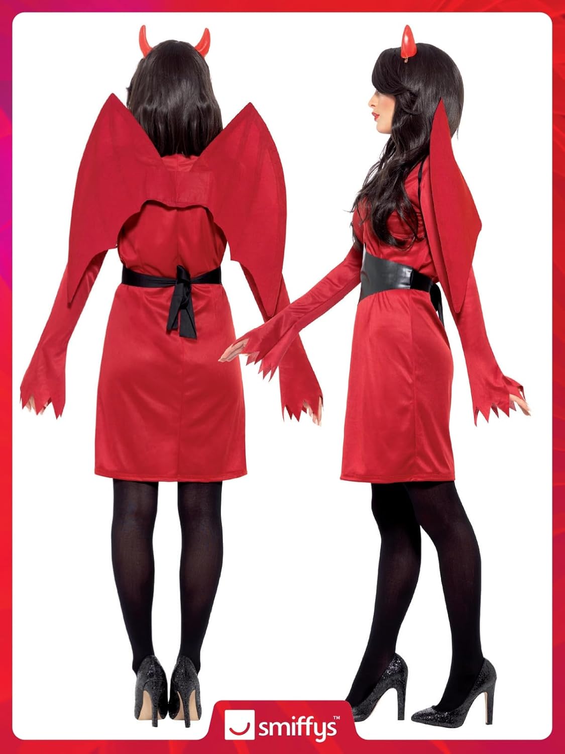 Includes Economy Devil Costume, Red, with Dress, Wings, Belt & Horns. Please note that all our Smiffys products will always come in full Smiffys branded packaging.